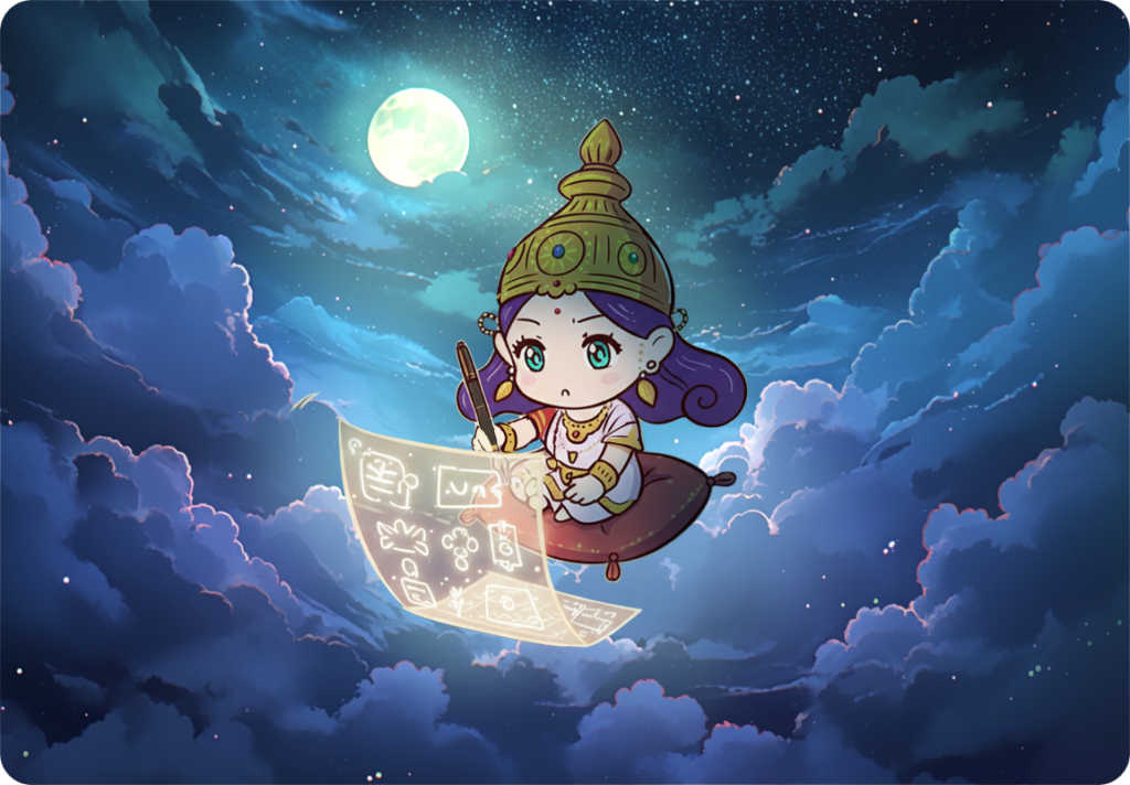 そしてちょうど万年筆のような形状で現れているのは、サラがカーヴィヤを著すチカラに溢れているところが具現化されたのだろう。いわゆる実体などないのだから、この何というのか、物理翻訳機能的なものもたいしたものだと思う。